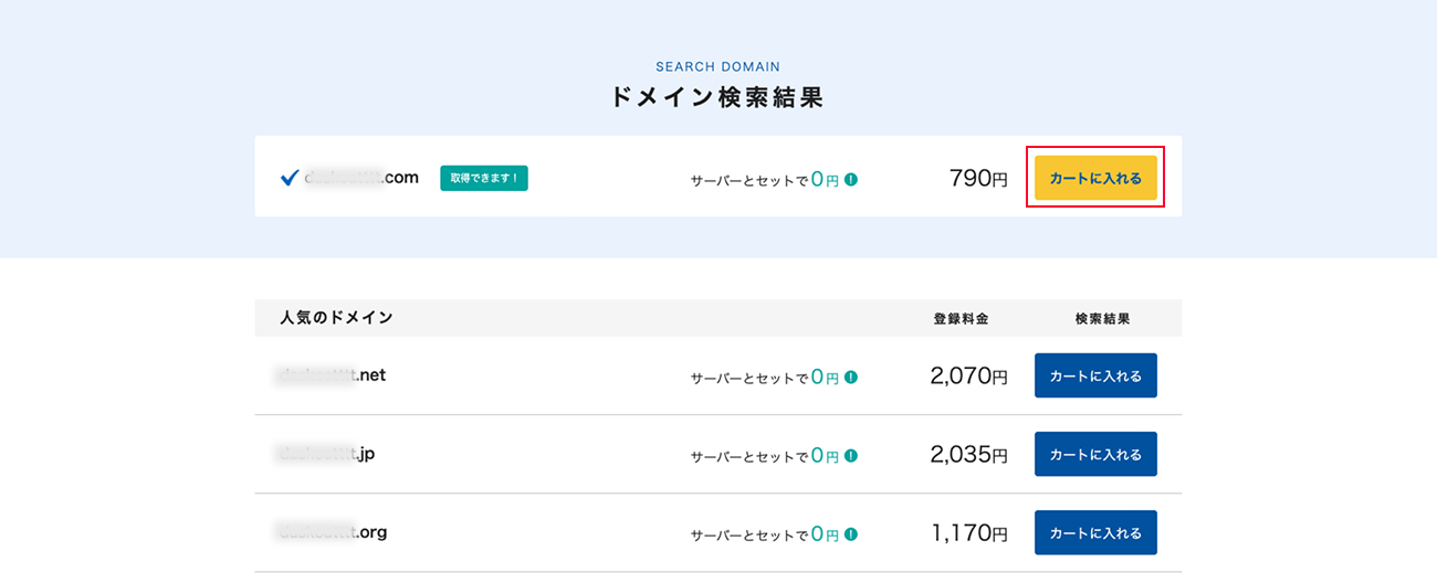• 取得可能なドメインを選択取得可能なドメインを選択