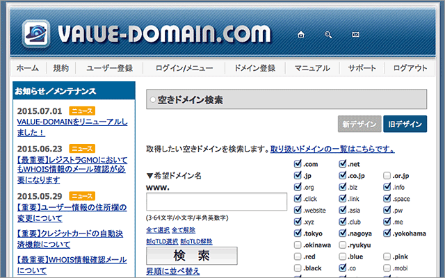 2015.07.01ニュース VALUE-DOMAINのリニューアルについて